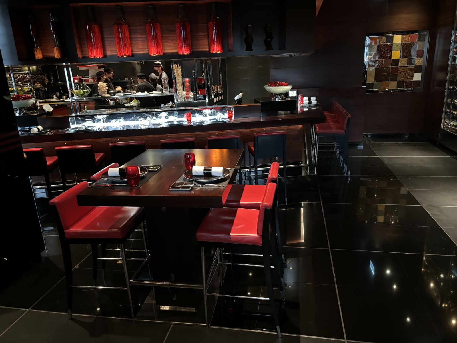 貫徹集團其他分店的設計風格,以紅黑色調,搭配富情調的燈光和開放式廚房,充滿個性。日籍主廚於集團工作多年,深諳經典菜色精髓,並在保留經典菜餚的同時,巧妙融入東洋風格。菜單之中,多款海鮮料理都是他的拿手品項,值得品嚐。餐廳提供套餐、單點和小份量菜色,選擇多元。