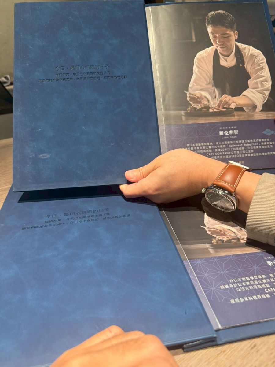 餐點設計由日本師傅新免唯智料理長擔任,曾在東京惠比壽米其林餐廳,特色主打日式健康無負擔精緻和食料理,其中白米飯加入蒟蒻米是低醣配方,平日用餐無客滿不限時,隨意點一個品項即可,五六日限定晨光早餐,咖啡及紅茶還可免費續杯。