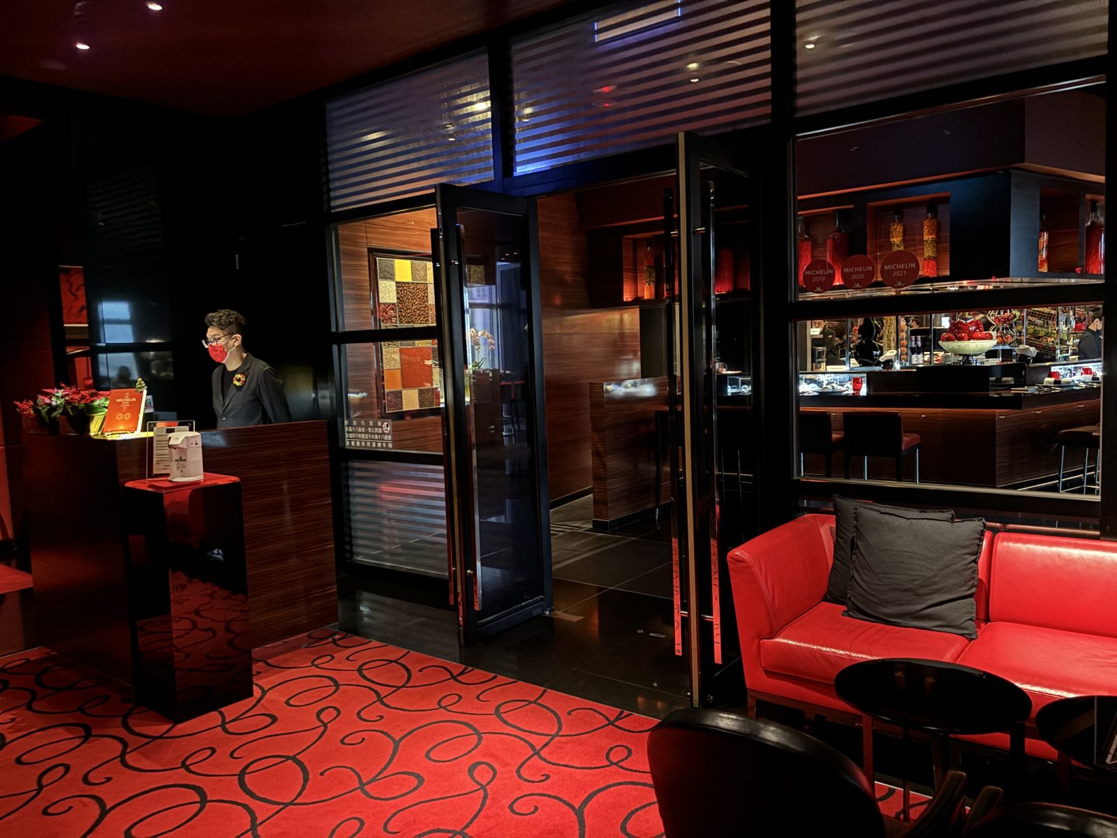 此店貫徹集團的風格同時融入東方元素,採用充滿個性的紅黑色調,並以優雅的白色蘭花點綴,環境低調奢華 果然二星米其林的霸氣!!!!